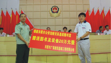 在擁軍方面,援建東莞市公安邊防支隊(duì)基層圖書室一個(gè),并贈(zèng)送圖書和設(shè)備20萬元。