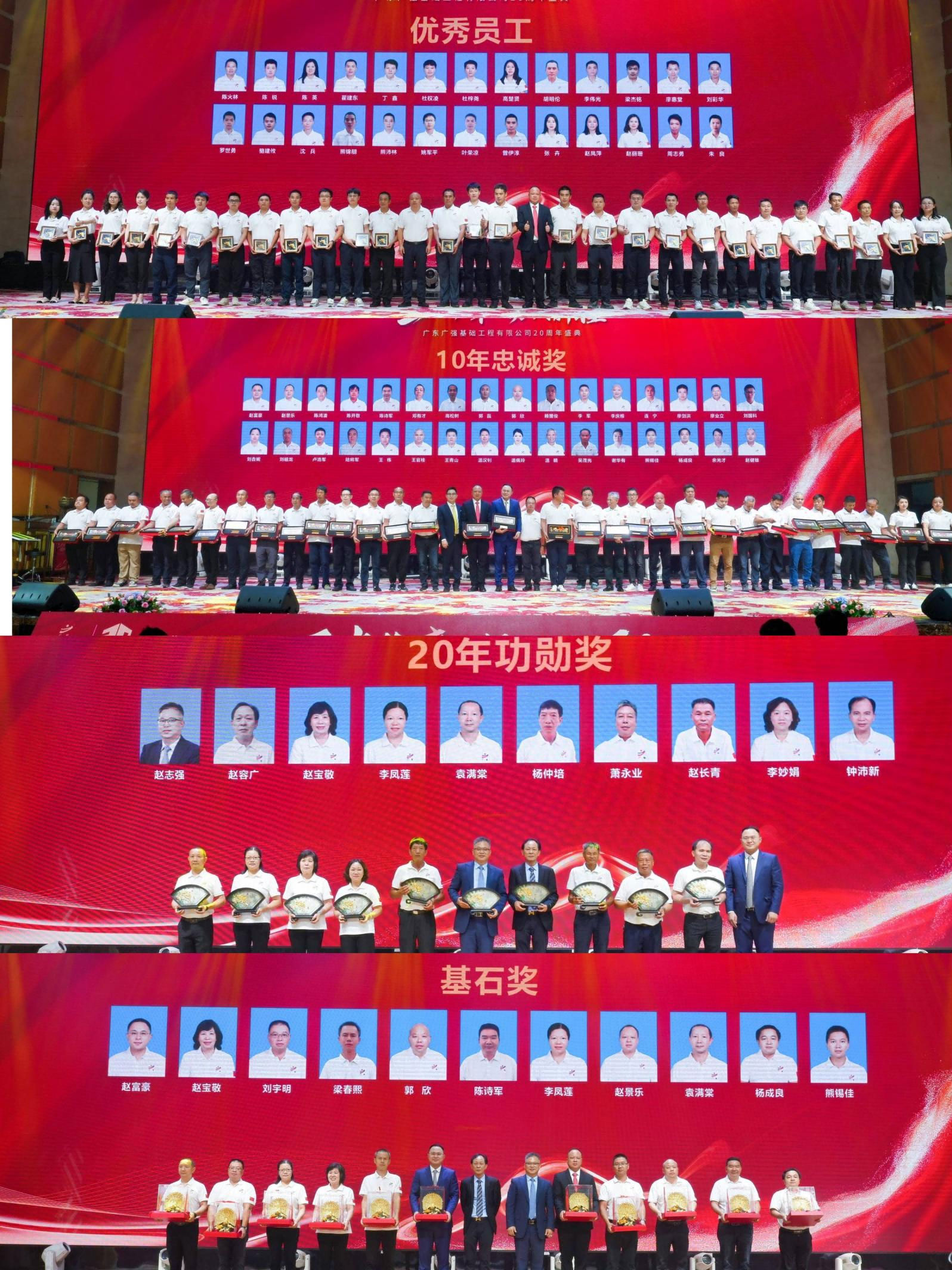20年華誕,耕耘變成了金色的碩果,甜在員工的心里 ;20華誕,努力變成了赫赫的戰(zhàn)績,美在員工的心里;20年,在每個員工心里,都有一個時代的強音;頒獎儀式進入尾聲之際,廣強基礎(chǔ)公司董事長、副董事長、總經(jīng)理及基石獎獲得者一同演唱了《廣強之歌》